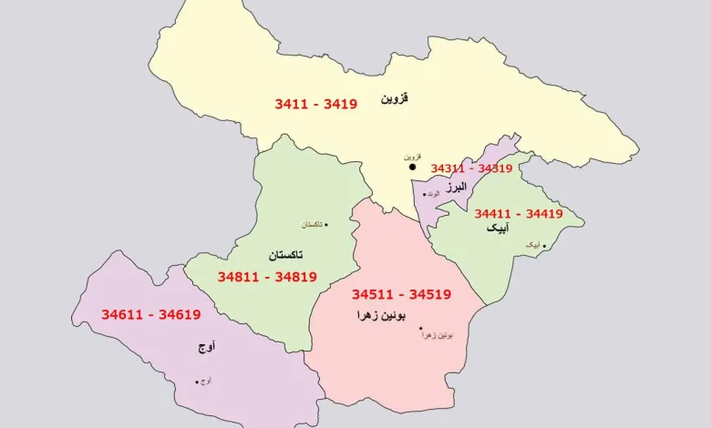 رنج کد پستی شهرهای استان قزوین